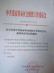 关于任命中共张家界市校园文学研究会支部委员会书记的通知